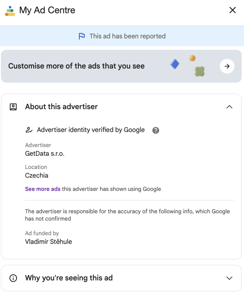 A přestože Google ověřuje totožnost zadavatelů reklam, nijak neřeší, že ti klamou veřejnost a porušují zákon. Zájem na zisku převažuje.