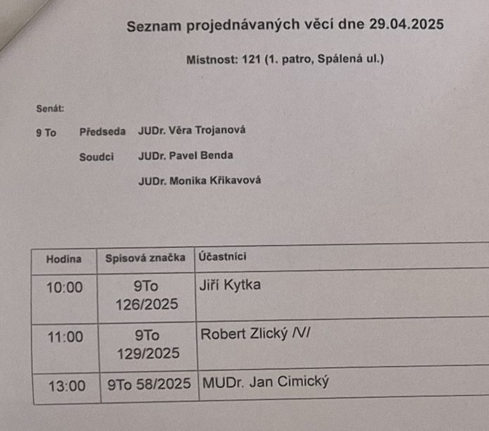 MS Praha 29.4.2025: „Utajený svědek“ v kauze MUDr. Jana Cimického promluvil
