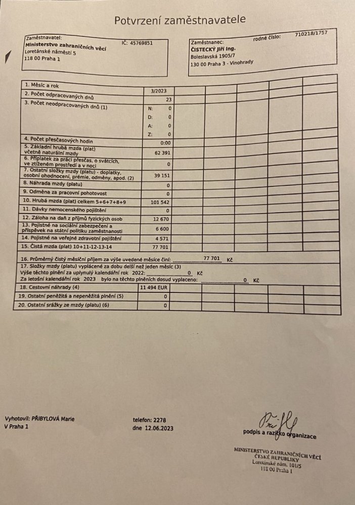 Velvyslanec ČR ve SRN byl „přepraven“ k podpisu smlouvy o prodeji bytu do Prahy…