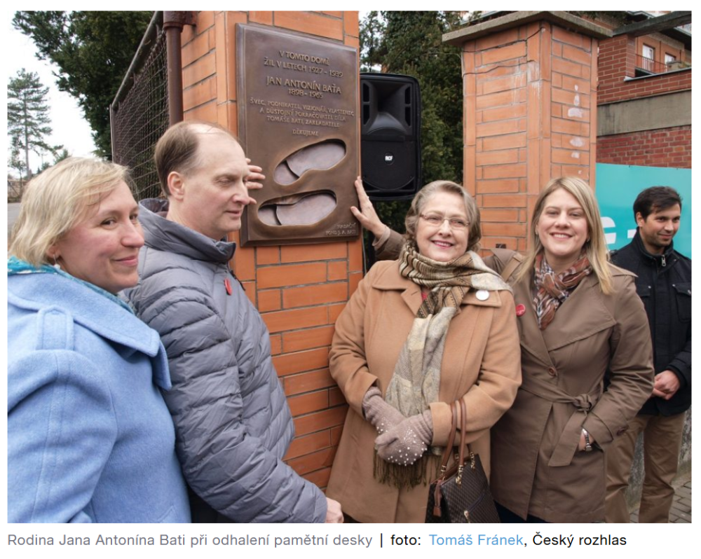 Within two years, a film about Tomáš Baťa is to be made for CZK 100 million, portraying him as an entrepreneur and, we hope, as a philosopher of life. His legacy is timeless and still relevant today. He did not recognize subsidies, only healthy competition and honest work. A TRILOGY should be filmed – the second part about JAN ANTONÍN BAŤA, when he and his colleagues led the company to prosperity (the largest company in Czechoslovakia and seventh in the world), and the third part about his CONVICTION, his life and work in Brazil (he was nominated for the Nobel Prize) and the still futile legal battles to recover his stolen, enormous fortune. What the Baťas have today in the Czech Republic, if anything, they had to buy. Jan A. Baťa received only an in memoriam award from the Czech Republic, the Order of the White Lion, First Class, on the occasion of the national holiday on October 28, 2019. Tomáš Baťa Sr. has not yet been honored. In 1991, his son Tomáš Baťa Jr. became a recipient of the Order of T. G. Masaryk, Second Class. The family villa of Jan Antonín Baťa in Zlín is now home to Czech Radio and the Czech Press Agency. Only a memorial plaque on the street, on a pillar at the entrance to the property, was permitted (March 9, 2018) ...