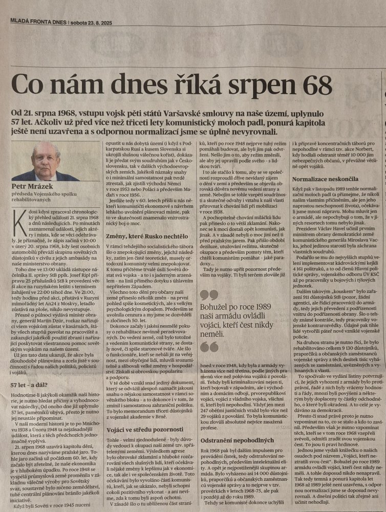 21.8.1968: 57. výročí barbarské okupace ČSSR vojsky Varšavského paktu, moc si ho nepřipomínáme. Nacistické zločiny si připomínáme neustále, komunistické zločiny a zločiny KSČ stále méně?