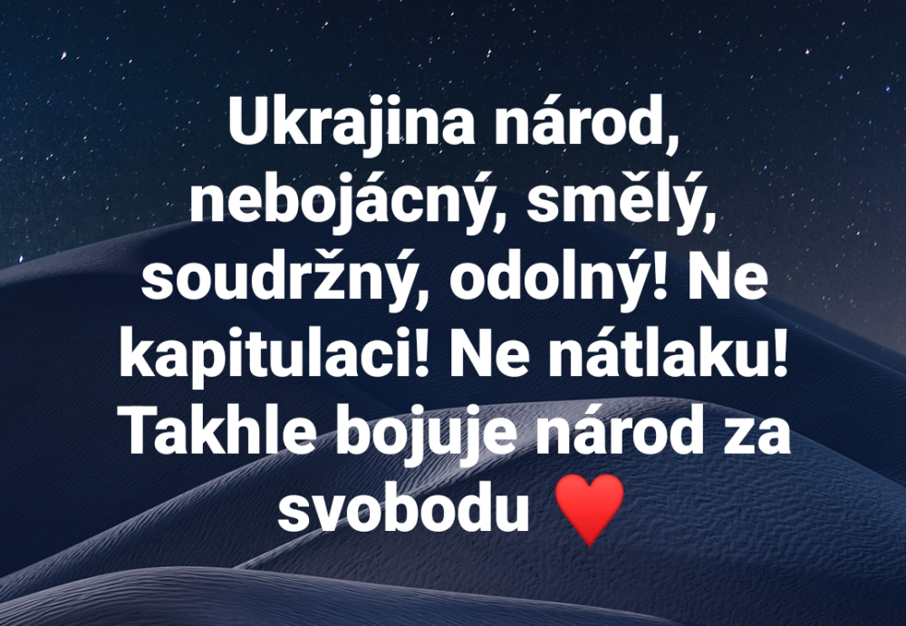 Evropa potřebuje více Ukrajinu, než Ukrajina Evropu. Pomáháním Ukrajině pomáháme i sami sobě. Ukrajina nežebrá, probouzí Západ, který mravně nebezpečně kolabuje z blahobytu. Jenom zákony o svobodě a demokracii před zlem neubrání.