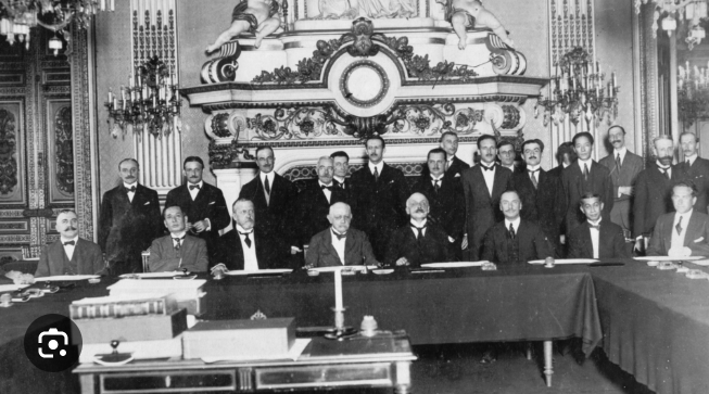 Kdo rozhodl: Vítězné mocnosti 1. světové války (zejména Francie, Británie, USA) na Pařížské mírové konferenci.
