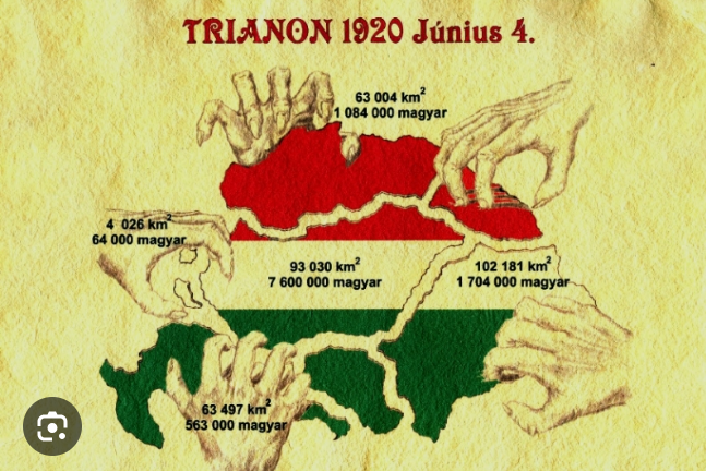 „Žádná země nebyla v Trianonu zničena krutěji než Maďarsko. Ale v této zemi žijí lidé silného ducha, kteří se s ničením své vlasti nesmiřují. Zmrzačení Maďarska je tak nečestné, že za něj NIKDO NECHCE NÉST ODPOVĚDNOST. Všichni předstírají, že o tom nevědí, všichni bezostyšně mlčí. Odkaz na právo národů na sebeurčení je jen lživá formule, zneužili vítězství tím nejkrutějším způsobem! Neexistuje žádní Francouz, Angličan ani Ital, který by pro svou zemi přijal podmínky, které byly vnuceny Maďarsku“.