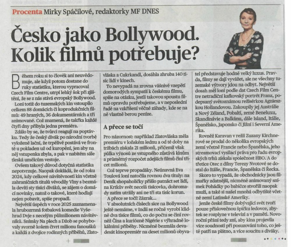 *** Článek „Česko jako Bollywood. Kolik filmů potřebuje?“ (viz příloha), jen úpadek české „kultury“ dokresluje.