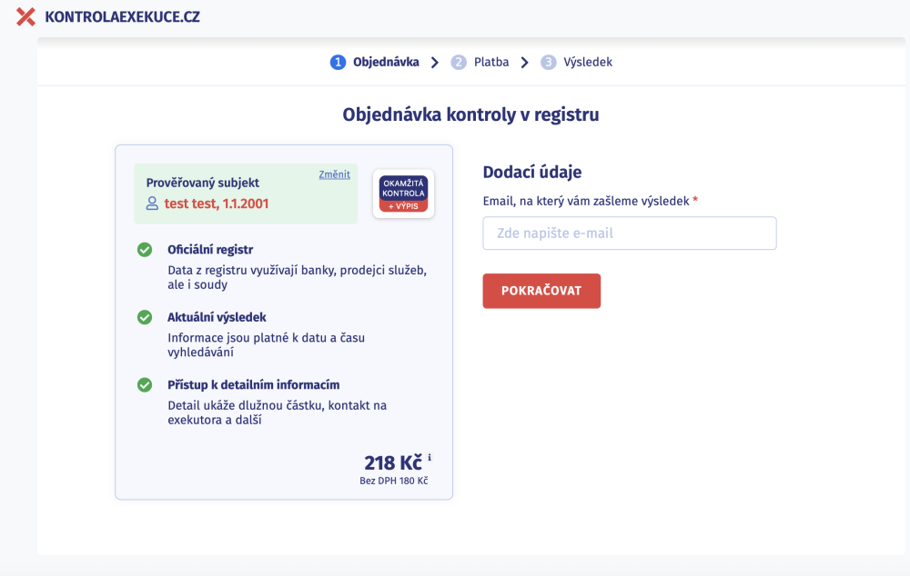 Web Kontrolaexekuce.cz, provozovaný osobou Vladimír Stěhule (spojen s firmou GetData s.r.o.), je typickým příkladem: za 218 Kč nabídne anonymní výpis „z oficiální evidence“, přestože není autorizovaným portálem Exekutorské komory ČR. Ve skutečnosti přeprodává výstupy z oficiální databáze, často roboticky a bez transparentních podmínek.