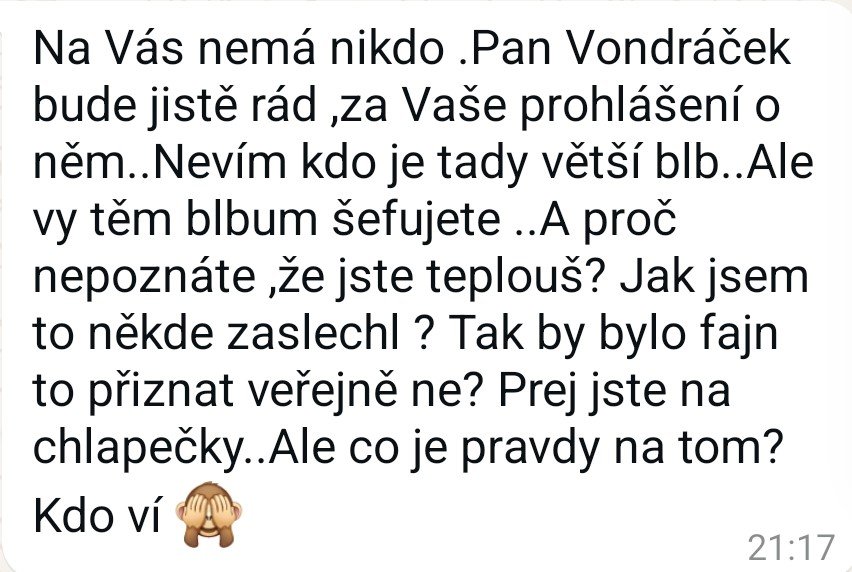 Jan Šinágl uvedl, že se rozhodl odhalit Jiřího Vondráčka jako zdroj informací kvůli neudržitelnému tlaku, kterému čelil ze strany soudů a právních orgánů. Po letech obhajoby svých článků a opakovaných soudních nařízeních cítil, že nemá jinou možnost než odkrýt zdroj, aby se očistil a prokázal, že jednal v dobré víře. „Nemohl jsem dále nést odpovědnost za obsah článků bez toho, aniž bych uvedl, odkud jsem informace čerpal. Jiří Vondráček mi poskytl tyto informace v dobré víře, s cílem pomoci,“ vysvětlil Šinágl.