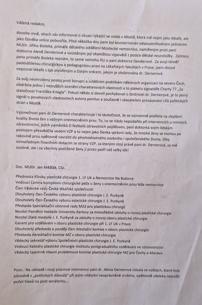 V příloze si můžete přečíst i dopis redakci dr. Měštáka, jak se neohroženě zastal jedné lékařky.