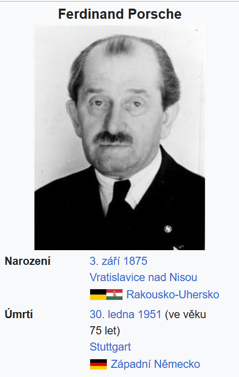 Symbolické, dnes před 77 lety zemřel dr. Edvard Beneš. Jeho politika vedla k vyhnání německých Čechů. Hrála zřejmě i roli v odchodu Ferdinanda Porscheho do Německa. Jinak by ho čekalo také vyhnání s rizikem, že by nepřežil a svět by přišel o geniálního konstruktéra.